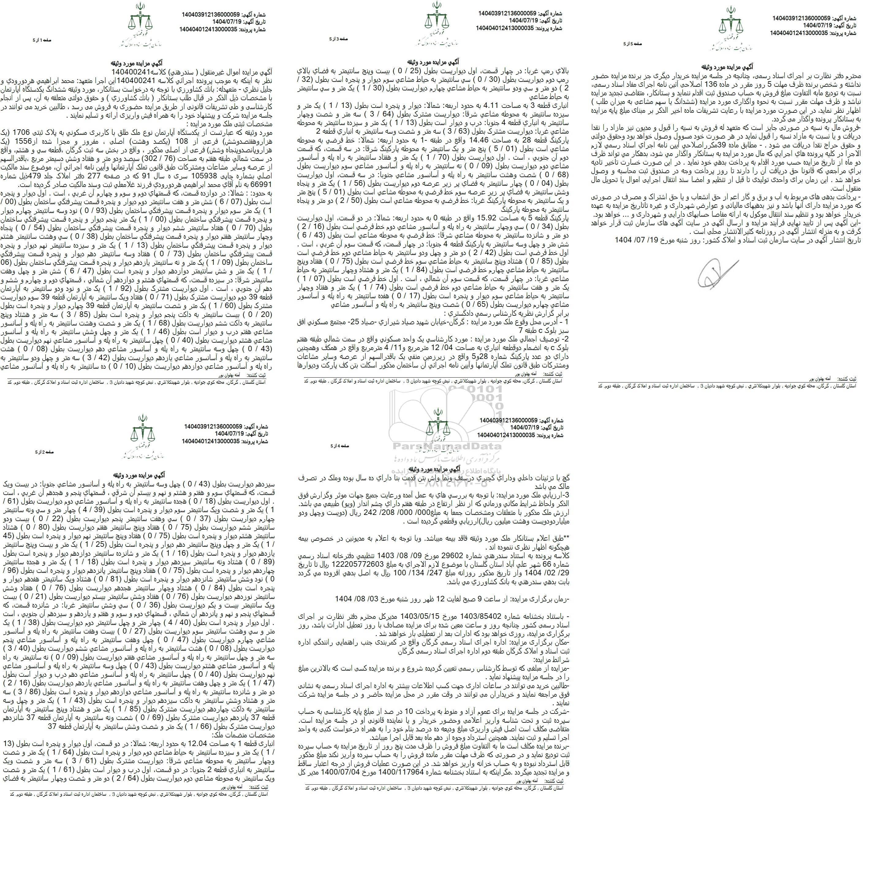 تاریخ مزایده ساعت 9 صبح لغایت 12 ظهر روز شنبه مورخ 1404.08.03