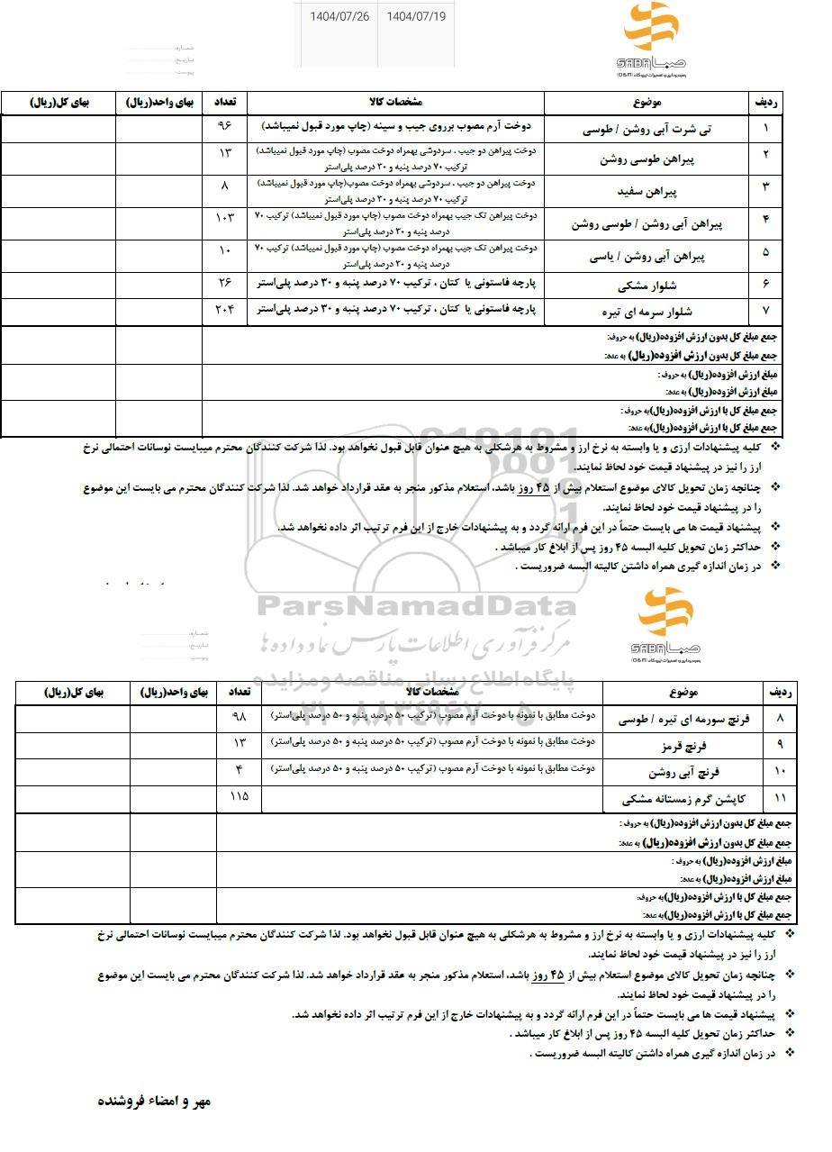 * حداکثر زمان تحویل کلیه البسه 45 روز پس از ابلاغ کار می باشد.