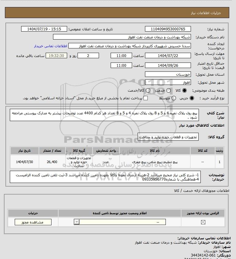 نام دستگاه خریدار:شبکه بهداشت و درمان صنعت نفت اهواز