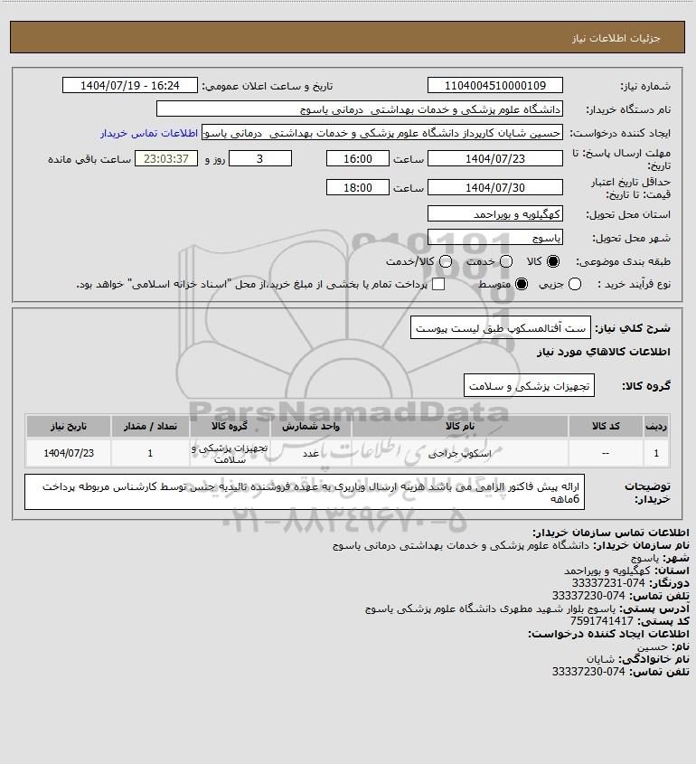 نام دستگاه خریدار:دانشگاه علوم پزشکی و خدمات بهداشتی درمانی یاسوج