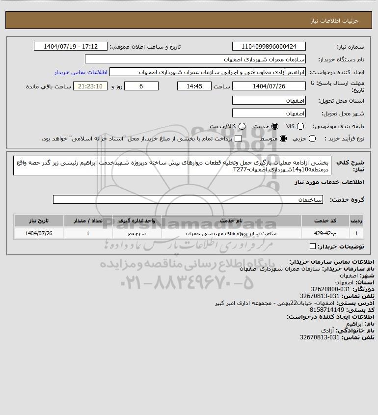 نام دستگاه خریدار:سازمان عمران شهرداری اصفهان