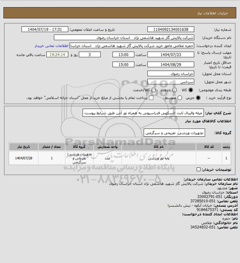 1 -- پایه تور ورزشی عدد تجهیزات ورزشی، تفریحی و سرگرمی 1 1404/07/28