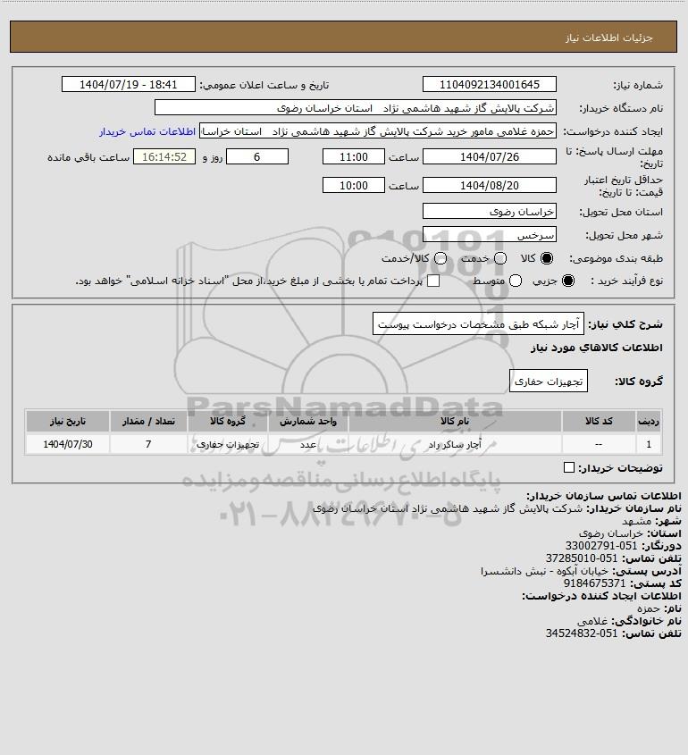 نام دستگاه خریدار:شرکت پالایش گاز شهید هاشمی نژاد استان خراسان رضوی