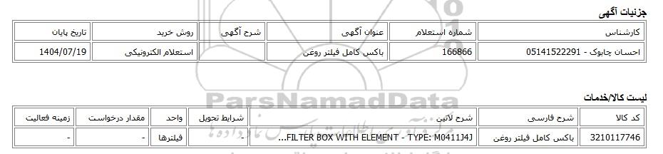 احسان چابوک - 05141522291166866باکس کامل فیلتر روغناستعلام الکترونیکی1404/07/19