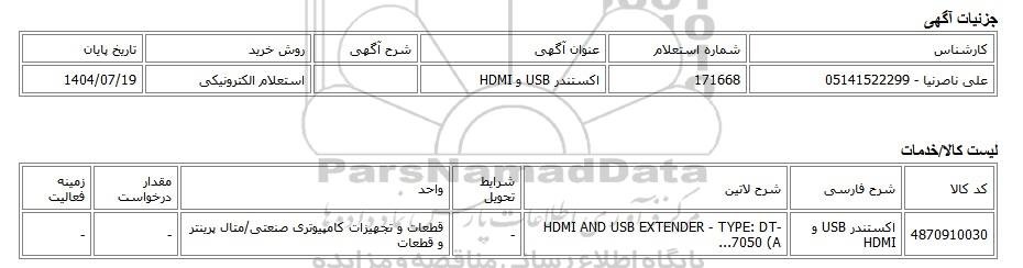 علی ناصرنیا - 05141522299171668اکستندر USB و HDMIاستعلام الکترونیکی1404/07/19