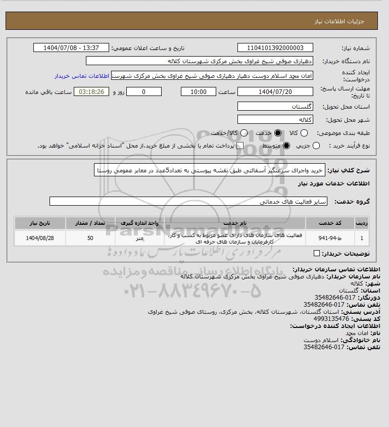 نام سازمان خریدار: دهیاری صوفی شیخ غراوی بخش مرکزی شهرستان کلاله