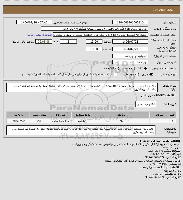 1 | -- | چای | کیلوگرم | غذا و نوشیدنی | 200 | 1404/07/22 |