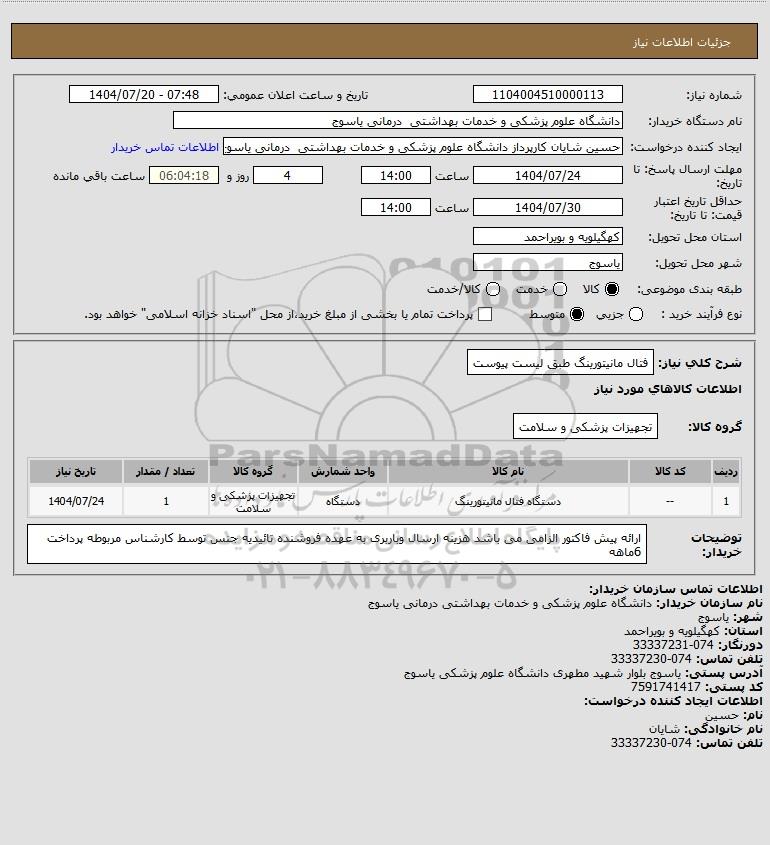 شرح کلی نیاز: فتال مانیتورینگ طبق لیست پیوست
