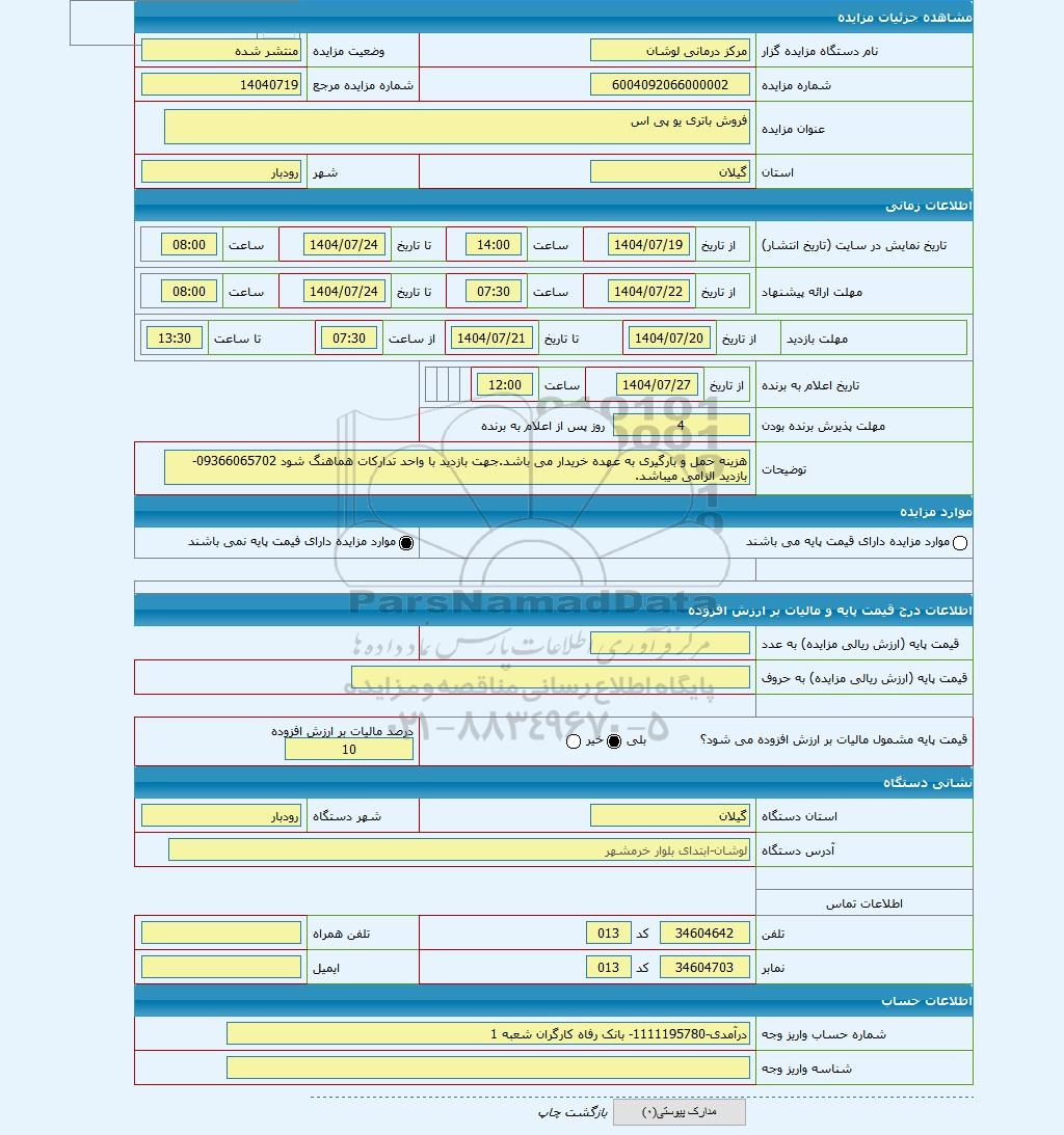 | شماره پارتی | شماره مزایده مرجع | 14040719 | ||
