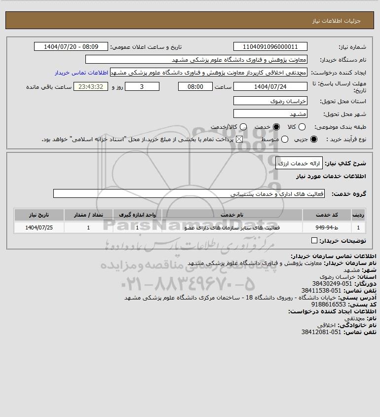 نام دستگاه خریدار:معاونت پژوهش و فناوری دانشگاه علوم پزشکی مشهد