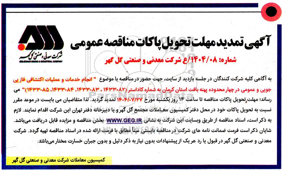 شماره: 1404/08/ع شرکت معدنی و صنعتی گل گهر