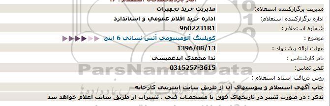 اداره برگزارکننده استعلام: اداره خرید اقلام عمومی و استاندارد