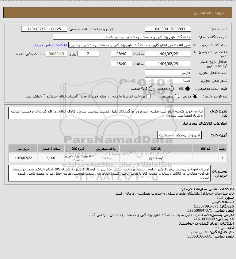 نام سازمان خریدار: دانشگاه علوم پزشکی و خدمات بهداشتی درمانی فسا