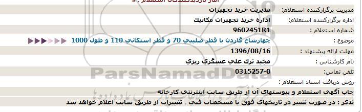 اداره برگزارکننده استعلام: اداره خرید تجهیزات مکانیک