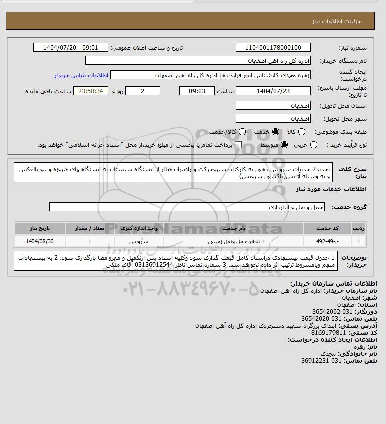 نام دستگاه خریدار:اداره کل راه اهن اصفهان