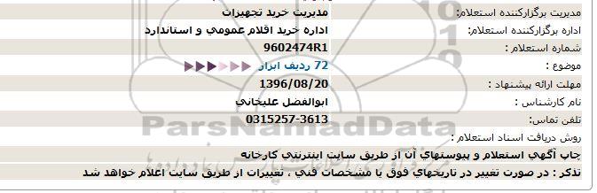 اداره برگزارکننده استعلام: اداره خرید اقلام عمومی و استاندارد