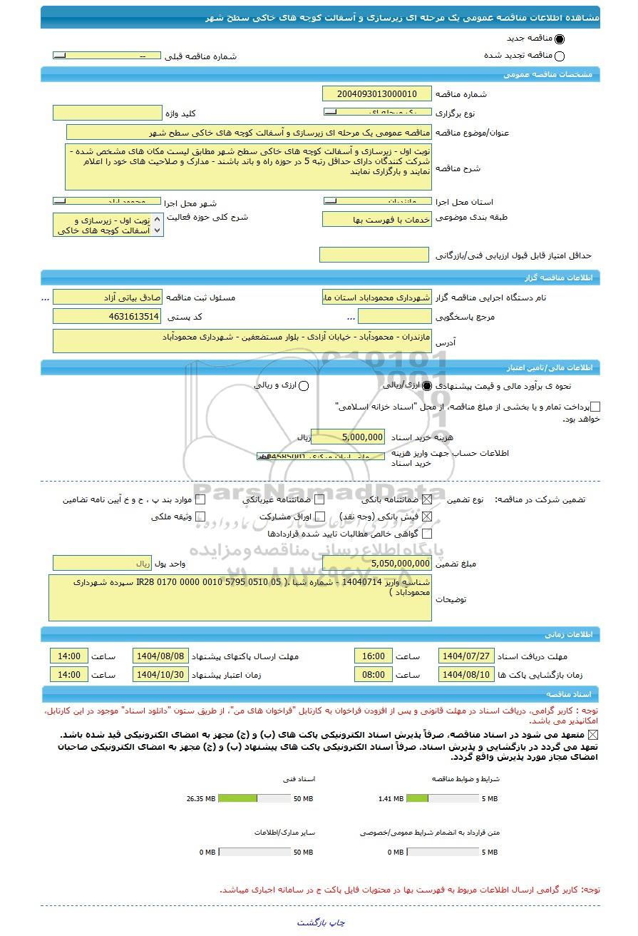 | مبلغ تضمین | 5,050,000,000 | واحد پول | ریال |