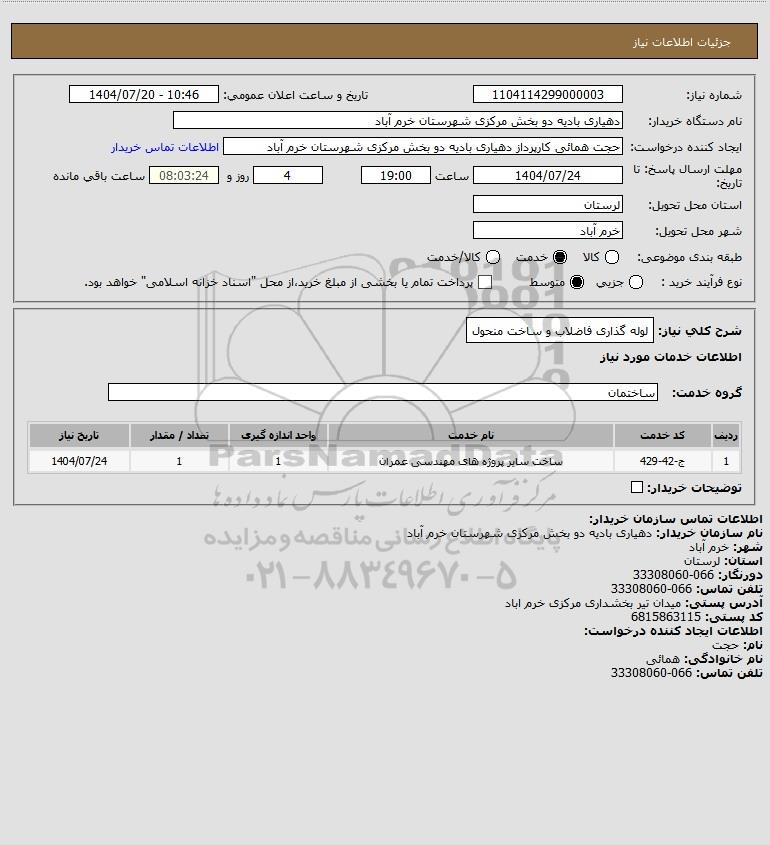 نام دستگاه خریدار:دهیاری بادیه دو بخش مرکزی شهرستان خرم آباد