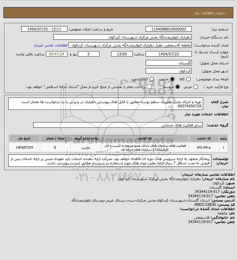 شرح کلی نیاز: تهیه و اجرای پایش تصویری سطح روستا مطابق با فایل های پیوستی