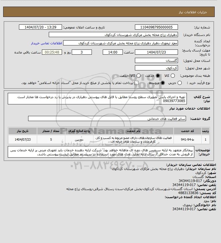 شرح کلی نیاز: تهیه و اجرای پایش تصویری سطح روستا مطابق با فایل های پیوستی