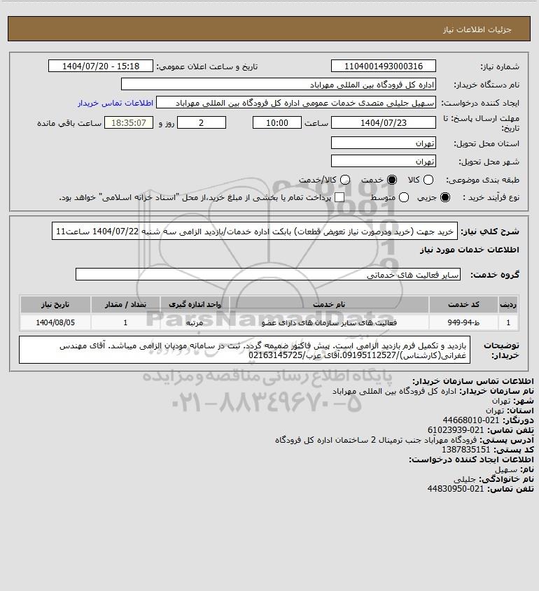نام دستگاه خریدار:اداره کل فرودگاه بین المللی مهراباد