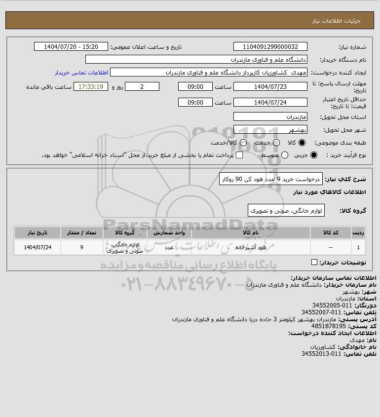 نام دستگاه خریدار:دانشگاه علم و فناوری مازندران