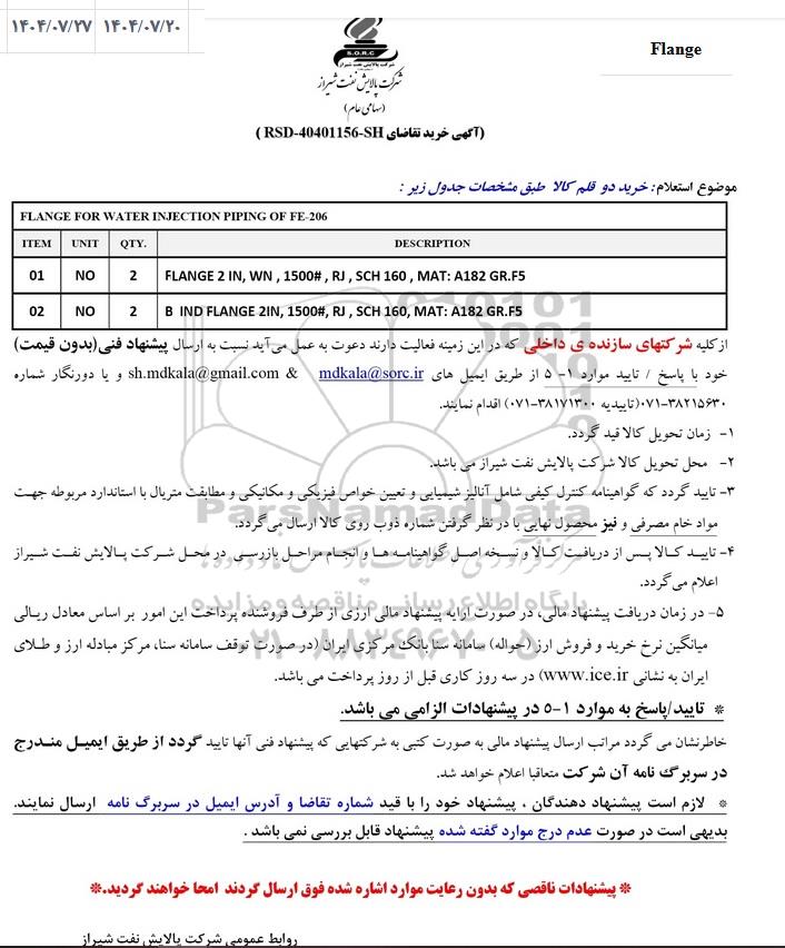 2- محل تحویل کالا شرکت پالایش نفت شیراز می باشد.