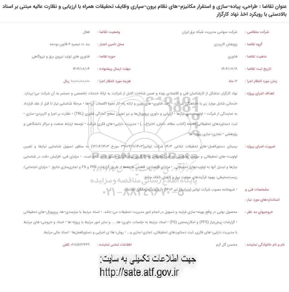 شرکت متقاضی: شرکت سهامی مدیریت شبکه برق ایران