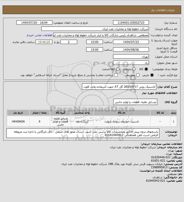 نام دستگاه خریدار:شرکت خطوط لوله و مخابرات نفت ایران