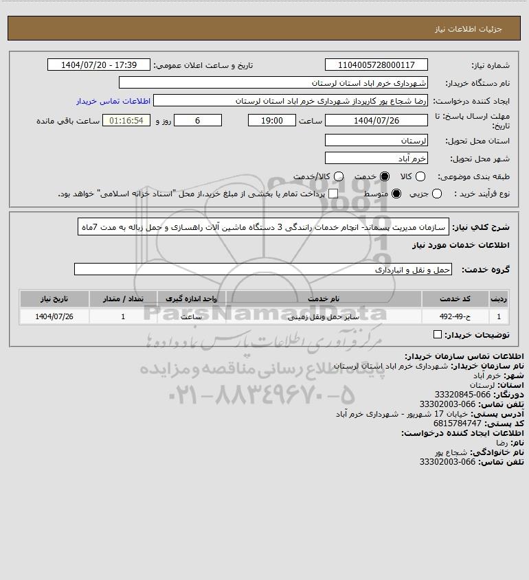 نام دستگاه خریدار:شهرداری خرم اباد استان لرستان
