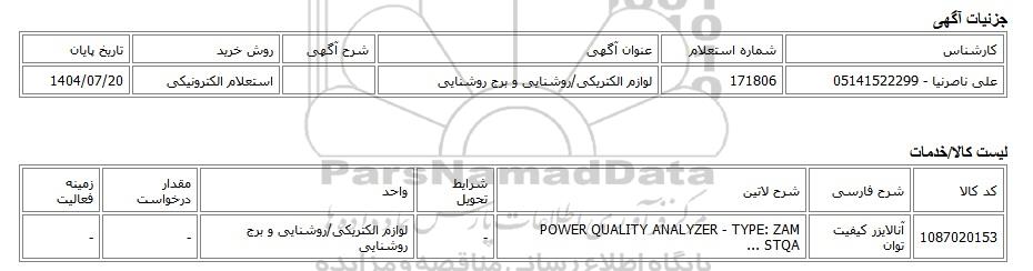 علی ناصرنیا - 05141522299171806لوازم الکتریکی/روشنایی و برج روشناییاستعلام الکترونیکی1404/07/20
