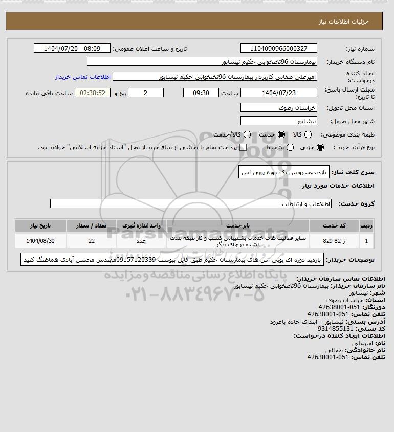 نام سازمان خریدار: بیمارستان 96تختخوابی حکیم نیشابور