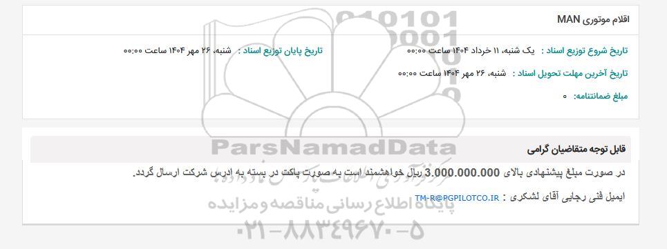 تاریخ پایان توزیع اسناد: شنبه، 26 مهر 1404 ساعت 00:00