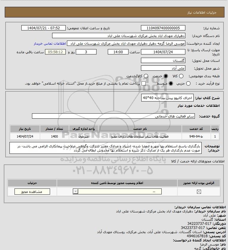 شرح کلی نیاز: اجرای کانیوو پیش ساخته 40*40