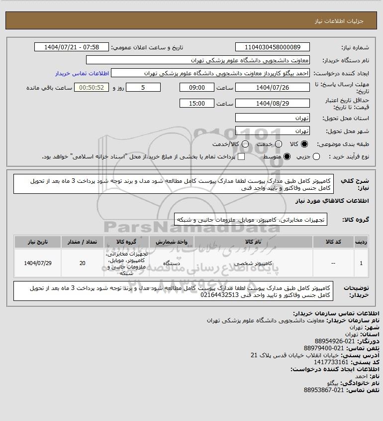 نام دستگاه خریدار:معاونت دانشجویی دانشگاه علوم پزشکی تهران