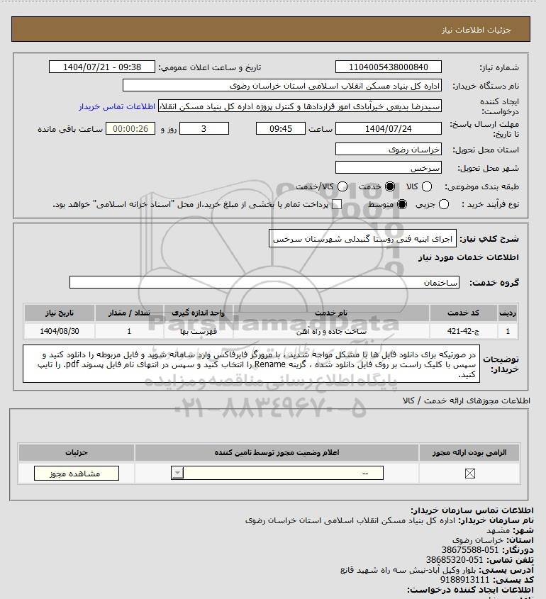 شرح کلی نیاز: اجرای ابنیه فنی روستا گنبدلی شهرستان سرخس