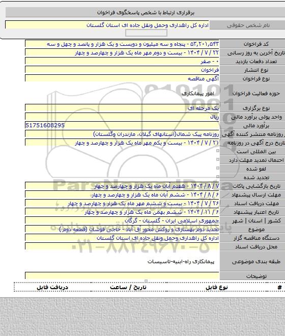 این مناقصه در تاریخ 1404/07/21 شروع و مهلت آن تا تاریخ 1404/07/26 میباشد.