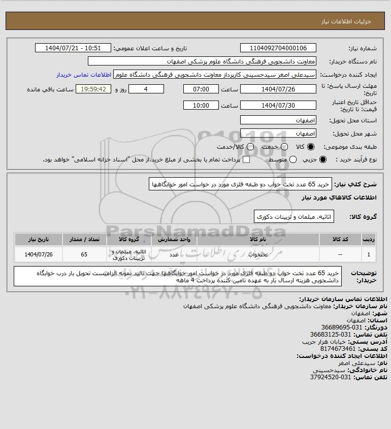 نام دستگاه خریدار:معاونت دانشجویی فرهنگی دانشگاه علوم پزشکی اصفهان
