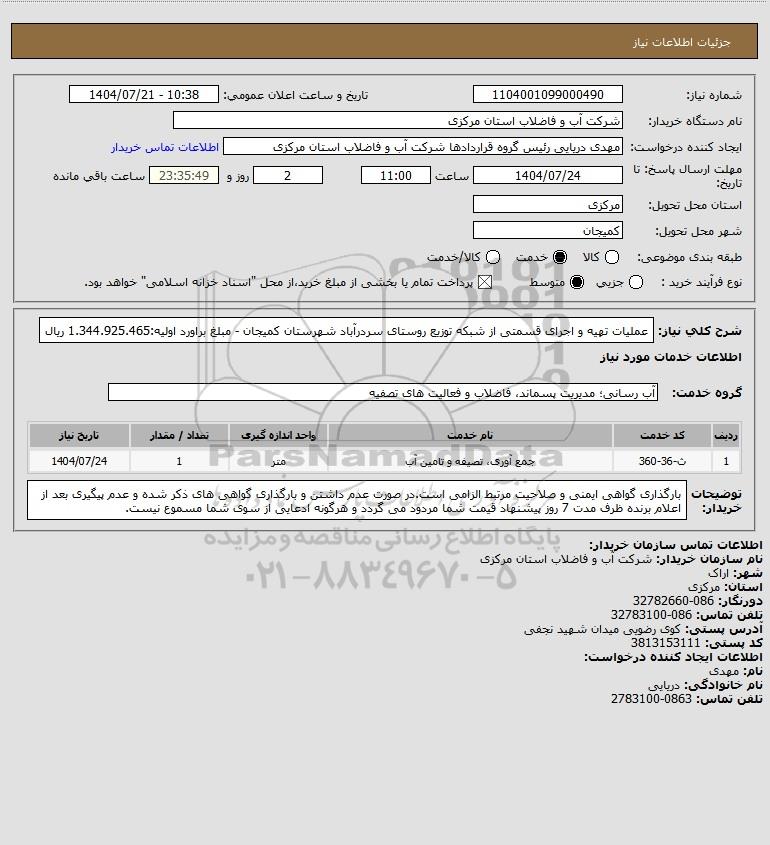 نام دستگاه خریدار:شرکت آب و فاضلاب استان مرکزی