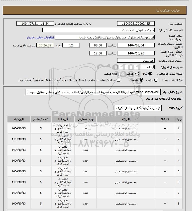 شرح کلی نیاز: 8قلمvibration sensorبه تیراژ38/توجه به شرایط استعلام الزامی/الصاق پیشنهاد فنی و مالی مطابق پیوست