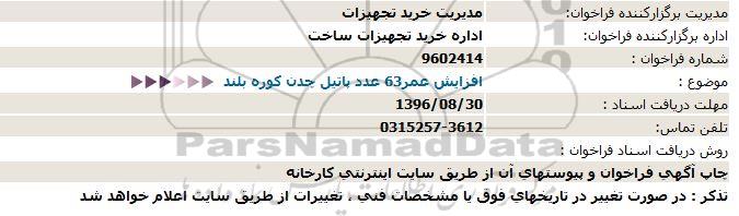 استعلام افزایش عمر ۶۳ عدد پاتیل چدن از کلیه افراد متخصص و شرکتها واجد شرایط دعوت به عمل میآید در مناقصه با کد خبرگزاری پارس نماد: 969078 شرکت نمایند.