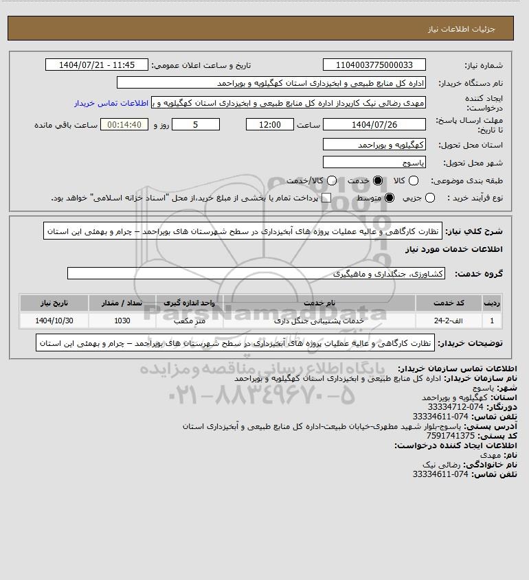 نام سازمان خریدار: اداره کل منابع طبیعی و ابخیزداری استان کهگیلویه و بویراحمد