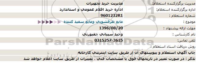 استعلام مایع ظرفشویی ومایع سفید کننده , استعلام مایع ظرفشویی ومایع سفید کننده