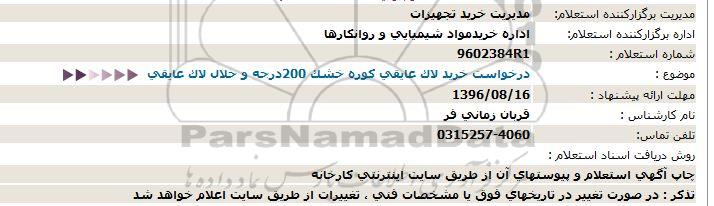 اداره برگزارکننده استعلام: اداره خریدمواد شیمیایی و روانکارها