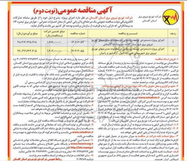 2 اجرای پروژه دستمزدی توسعه روستایی در محدوده مدیریت های توزیع نیروی برق شهرستان علی آباد کتول،آزادشهر، رامیان 1404.2-55 1.302.000.000 26.037.643.305
