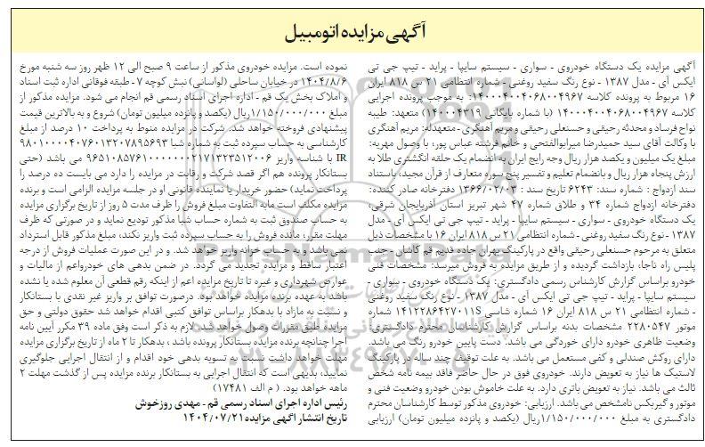 آگهی مزایده اتومبیل ؟