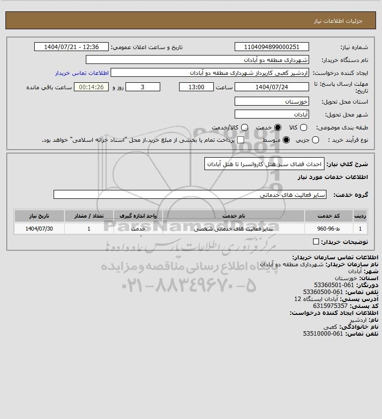 شرح کلی نیاز: احداث فضای سبز هتل کاروانسرا تا هتل آبادان