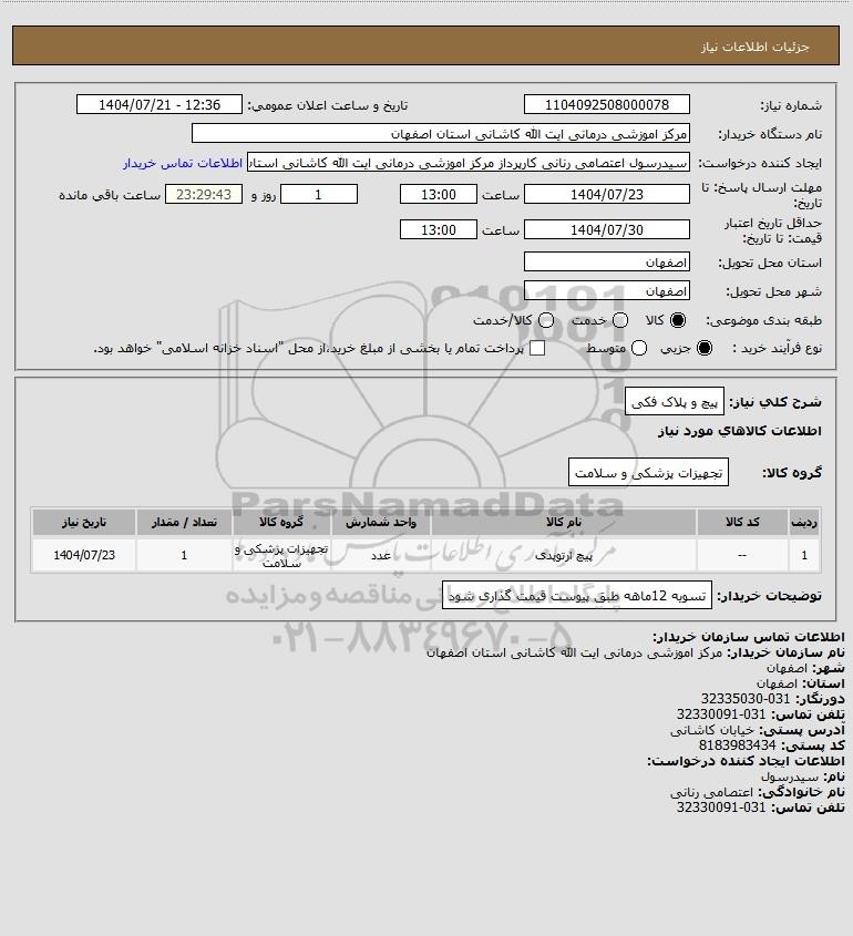 نام دستگاه خریدار:مرکز اموزشی درمانی ایت الله کاشانی استان اصفهان