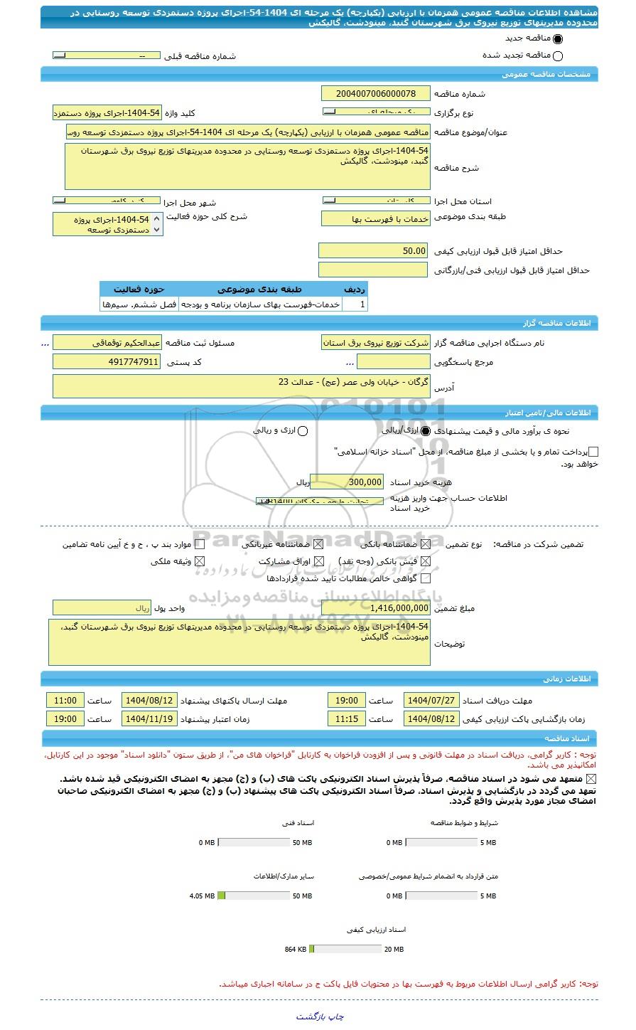 | شرح مناقصه | 1404-54-اجرای پروژه دستمزدی توسعه روستایی در محدوده مدیریتهای توزیع نیروی برق شهرستان گنبد، مینودشت، گالیکش | ||||||||