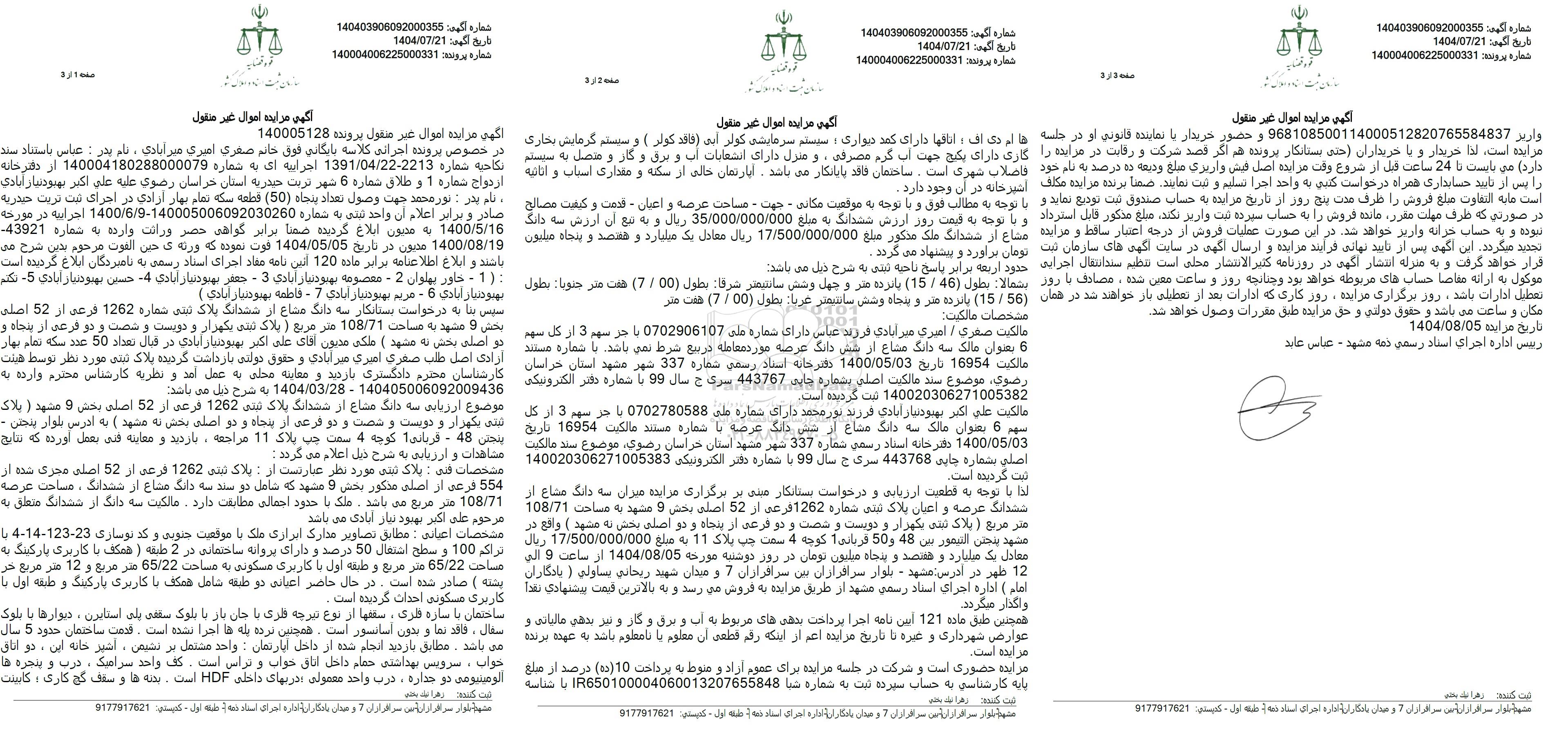مزایده سه دانگ مشاع از ششدانگ پلاک ثبتی 1262 فرعی از 52 اصلی بخش 9 , مزایده سه دانگ مشاع از ششدانگ پلاک ثبتی 1262 فرعی از 52 اصلی بخش 9